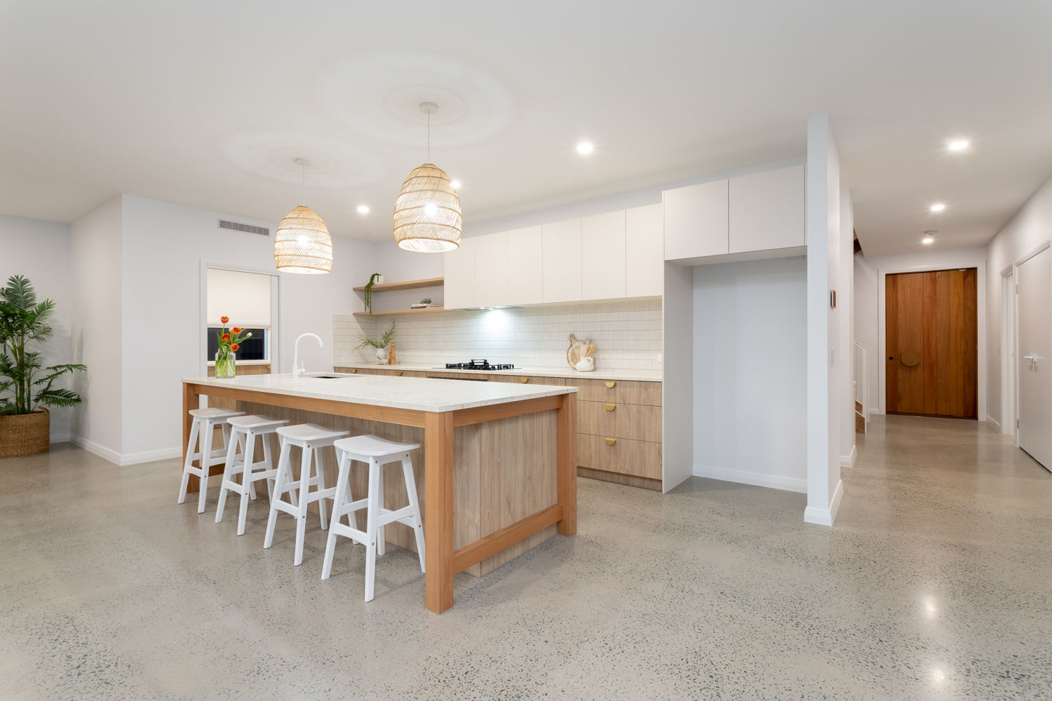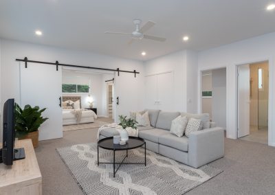 This home was designed with entertainment in mind. We made sure to include and accentuate a large kitchen, living and dining area that feeds onto the outdoor entertainment area. Additionally it was important to include lots of bedrooms so each member of the family had their own little sanctuary. Shane and Jacob worked on this home together for B&L James. This homes was aimed to capture the high-end Alderley market.